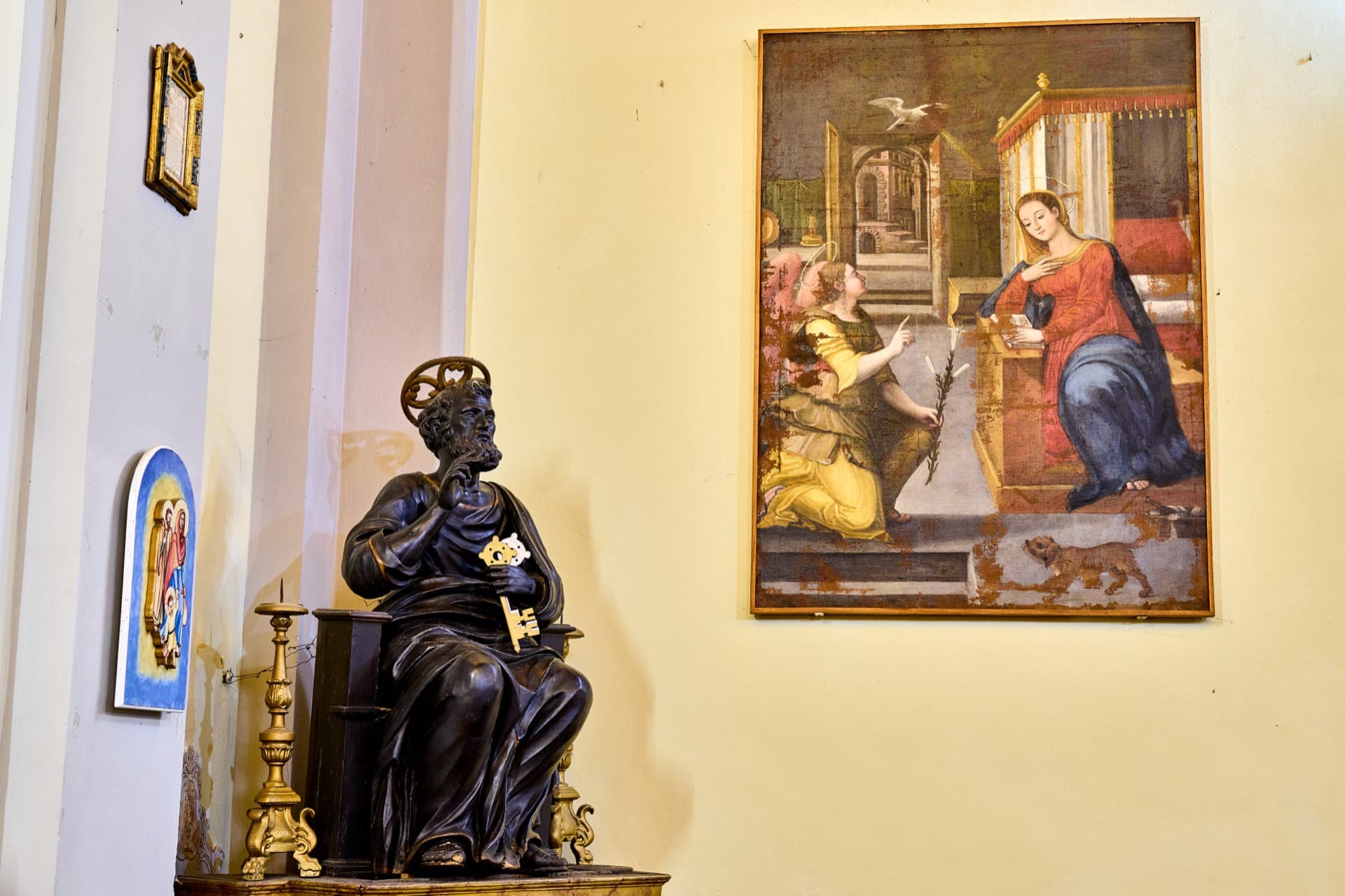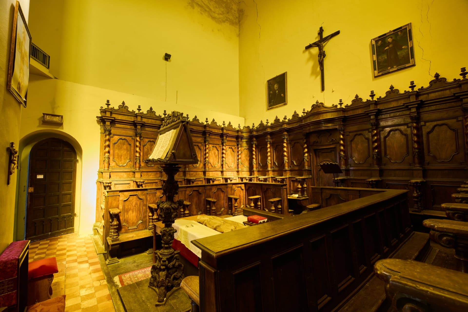 CONVENTO DI SANTA MARIA DELLA MISERICORDIA (SANTUARIO DI SAN PASQUALE) – La costruzione del Convento di Santa Maria della Misericordia risale al 1523, a fianco di una selva poco distante dal castello di Poggio, per munificenza del nobile poggese Mariotto da Sajano, su licenza del Papa Adriano VI, ad uso perpetuo e abitazione dei frati minori regolari e osservanti. Nel 1660 tutto il complesso, a causa del degrado dovuto al tempo trascorso, viene riedificato quasi per intero. Al suo interno sono ancora conservati pregevoli tele e un monumentale coro ligneo settecentesco in noce dell’intagliatore fanese Giuseppe Tacchetti. Nel 1701, i Padri della Comunità Francescana vollero accentuare la spiritualità di quel luogo introducendovi la devozione a un santo del loro ordine, San Pasquale Baylon (1540-1592), un frate spagnolo da poco salito agli onori dell’altare per la povertà, l’umiltà e l’amore verso i fanciulli. La venerazione del Santo si diffuse fra la popolazione del luogo e dei castelli vicini, spesso ricevendone grazie e tramandandone il culto, consolidando nel tempo una radicata tradizione religiosa che permane tuttora attraverso un grande concorso di popolo. Dal 2017 San Pasquale Baylon è stato nominato Patrono del nuovo Comune di Terre Roveresche, celebrazione ricorrente il 17 maggio di ogni anno, a ricordo del giorno in cui il Santo si addormentò nel nome del Signore.